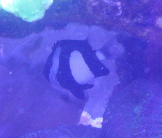 The Humbug Angelfish is a striking species of angelfish native to the Indo-Pacific region, particularly around coral reefs in the Philippines, Indonesia, and the Hawaiian Islands. Known for its elegant and dramatic appearance, this species features a slender body, with the males exhibiting a striking black and white pattern, while females are typically pale with subtle hints of yellow. Humbug Angelfish are smaller compared to other angelfish species, growing to about 6 inches in length, making them a perfect choice for medium to large marine aquariums.
